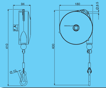 Vyvažovač s hliníkovým tělem a lankem z Dyneemy. Vyvažovače a balancéry snižují namáhavost práce, eliminují prostoje, a pomáhají zlepšit kvalitu práce, snížit opotřebovávání kabelů a hadic a zabránit úrazům na pracovišti. Jsou vhodné jak pro práci ve stoje, tak i v sedě u stolu, lze na ně zavěsit celou řadu nástrojů, od menšího ručního nářadí až po průmyslové bodovací kleště či jiné nástroje. U balancéru i vyvažovače je možné nastavením předpětí pružiny zvolit sílu, jakou má být břemeno nadlehčováno a jeho přizvednutím či přitažením k zemi lze měnit výšku jeho zavěšení podle potřeby. Kromě funkcí předešlé řady balancérů (9336 - 9340), jsou tyto nové balancéry vybaveny novým zařízením umožňující zastavení v požadované poloze provedením jednoduché operace. Rychlejším zatáhnutím za lanko dojde k zablokování cívky balancéru a tím je břemeno zavěšeno v konstantní výšce (funkce STOP). !!! NENÍ URČEN JAKO NÁHRADA ZA ZVEDACÍ ZAŘÍZENÍ, KE ZDVIHÁNÍ A PŘENÁŠENÍ BŘEMEN!!!