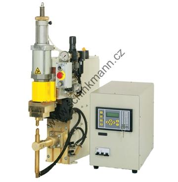 • Středofrekvenční svářečky jsou konstruované k dosažení vysoké kvality sváření. • Provedení válce z chromované oceli zaručuje vysoký výkon a dlouhou životnost i při plném zatížení; nastavitelné antirotační zařízení. • Bezolejové pneumatické komponenty eliminují olejové výpary a chrání tak životní prostředí. • Válec s nastavitelným dvojím zdvihem ovládaným klíčem. • Zabudovaný filtr se zařízením regulace stlačeného vzduchu. Zařízení na odpojení stlačeného vzduchu. • Ventily regulující rychlost elektrod, tlumič otřesů válce při dopadu a tlumič výstupu vzduchu zajišťující minimální hluk. • Dvoupolohový elektrický pedál sevře a svaří kusy pouze tehdy, pokud jsou umístěny ve správné pozici. • Příprava pro připojení přídavného dvoustupňového elektrického pedálu pro přímé vyvolání druhého svářecího programu. • Vodou chlazený transformátor, desky, držáky elektrod a elektrody. Transformátor s vinutím zalitým epoxidovou pryskyřicí. • Maximální bezpečnost při práci zajišťují také dvouruční bezpečnostní ovladač s časovačem a odnímatelný klíčový selektor. Dvouruční ovladač je standardem pouze u výstupkových svářeček (u bodovek na přání). • Vypínač průtoku s indikátorem, jenž zastaví stroj, přestane-li být dodávána chladící kapalina. Kontrolní skříň pro středofrekvenční svářečky Kontrolní skříň, která řídí středofrekvenční svářečky, obsahuje invertor, řídící jednotku TE 600 a zařízení k ochraně a bezpečnosti. Jsou vyráběny v různých velikostech v závislosti na výkonu svářečky. Kontrolní skříň je konstruována tak, aby mohla být situována na pracovním stole a blízko svářečky. Řídící jednotka TE 600 Jednoduše programovatelná jednotka s alfanumerickým LCD displejem zobrazujícím hlášení ve vámi zvoleném jazyce. Možnost volby z 63 svařovacích programů, 2 s přímou volbou. Provoz na konstantní proud s možností přímé volby hodnoty svařovacího proudu. Během svařování je automaticky udržována hodnota vámi navoleného proudu. Systém měření svařovacího proudu s možností vkládat kontrolní limity hodnot proudu. Náběh a doběh proudu, pulsace, funkce předehřevu a dohřevu. Svařování proveditelné se třemi různými sekvenčními regulacemi k dosažení požadované křivky proudu. Nastavení doby sváření v milisekundách. Funkce krokovače pro kompenzaci opotřebení elektrod s programovatelnou křivkou. Počítadlo svárů s možností naprogramovat počet svárů, které mají být provedeny. Vyjímatelný klíč k uzamčení programování. Tlačítko volby dvouručního nebo nožního ovládání. Příslušenství 71380 rozhraní RS485 pro síťové připojení řídící jednotky. Slouží k programování a záznamu dat. 71379 rozhraní RS232 pro připojení k osobnímu počítači nebo tiskárně pro záznam dat. 2162 – 2163 otočný volič pro výběr programů sváření. 70462 přídavný elektrický dvoustupňový pedál pro vyvolání druhého programu sváření. 70491 dvouruční bezpečnostní ovládání (standard u svařovacích lisů). Technické parametry: Napájení (jednofázové) [V/Hz]: 400/50 Výkon při 50% [kVA]: 56 Max. svářecí výkon [kVA]: 88 Zkratový proud [kA]: 25 Napětí naprázdno [V]: 8 Jištění [A]: 63 Hmotnost [kg]: 212